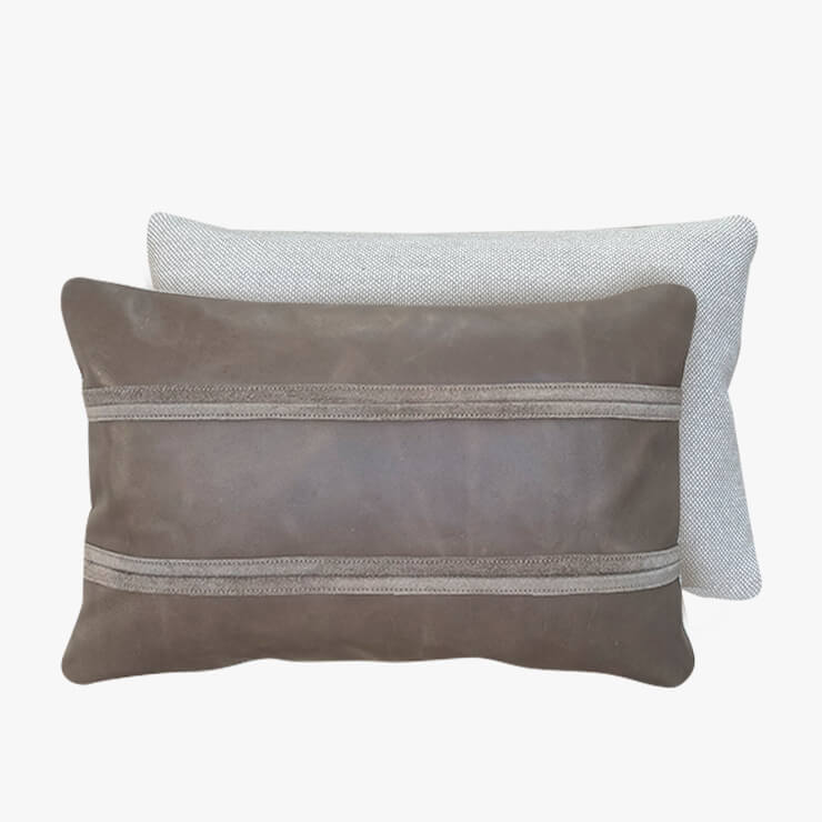 Denne lille pyntepude i læder og uld er skabt som en taktil detalje til det rolige, kuraterede hjem.